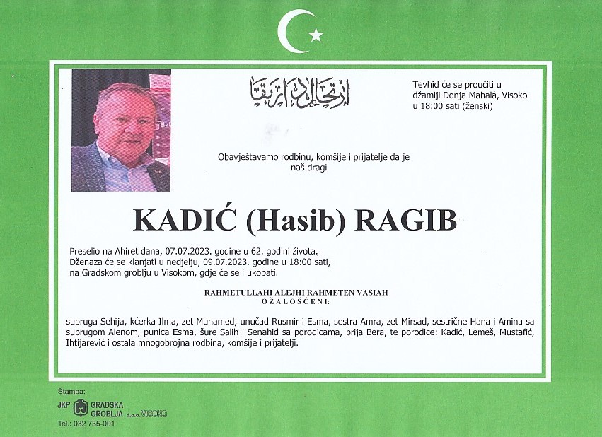 KADIĆ (Hasib) RAGIB 09.07.2023. godine u 18:00 sati 8. Jula 2023. KADIĆ (Hasib) RAGIB 09.07.2023. godine u 18:00 sati