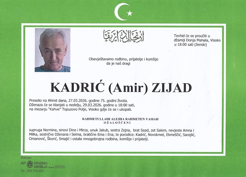 KADRIĆ (Amir) ZIJAD 29.03.2026. u 18:00 sati