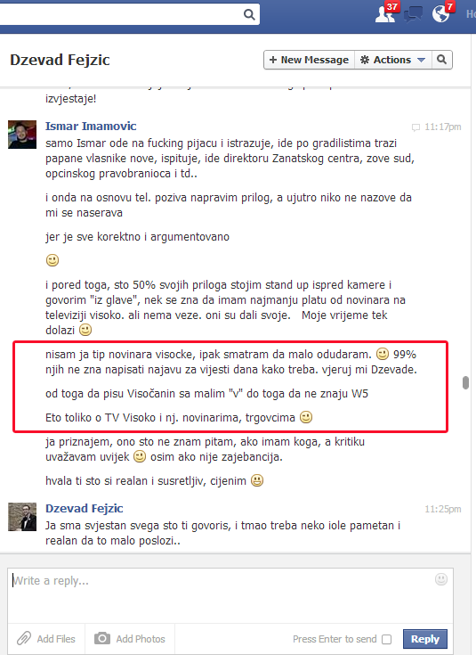 Međutim mračnim silama, kočničarima visočkog napretka, političkim siledžijama i novinarskim kabadahijama, a ustvari papirnim zmajevima nije dovoljan samo jedan medijski rat. U svojim sočnim prepiskama i neoborivim dokumentovanim dokazima oni se obračunavaju i sa www.magazinplus.eu i lično sa vlasnikom tog portala Midhatom Hajdarevićem koji je po njima samo „bezobrazna seljačina“ i ništa više. A kad ni to nije dovoljno onda svoju bolesnu potrebu za klevetanjem i ogovaranjem zadovoljavaju omalovažavanjem i ismijavanjem radnih kolega unutar RTV Visoko.