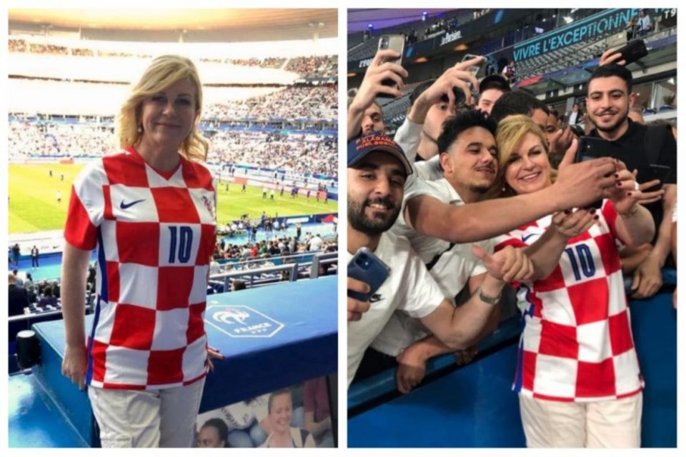 Bivša predsjednica Hrvatske Kolinda Grabar-Kitarović bila je glavna atrakcija sinoć na meču Francuske i Hrvatske.