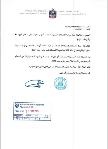 Kao što je i najavio, ministar vanjskih poslova BiH Elmedin Konaković dobio je odgovor iz UAE iz kojeg je jasno da u martu 2021. godine nije bio u ovoj državi.