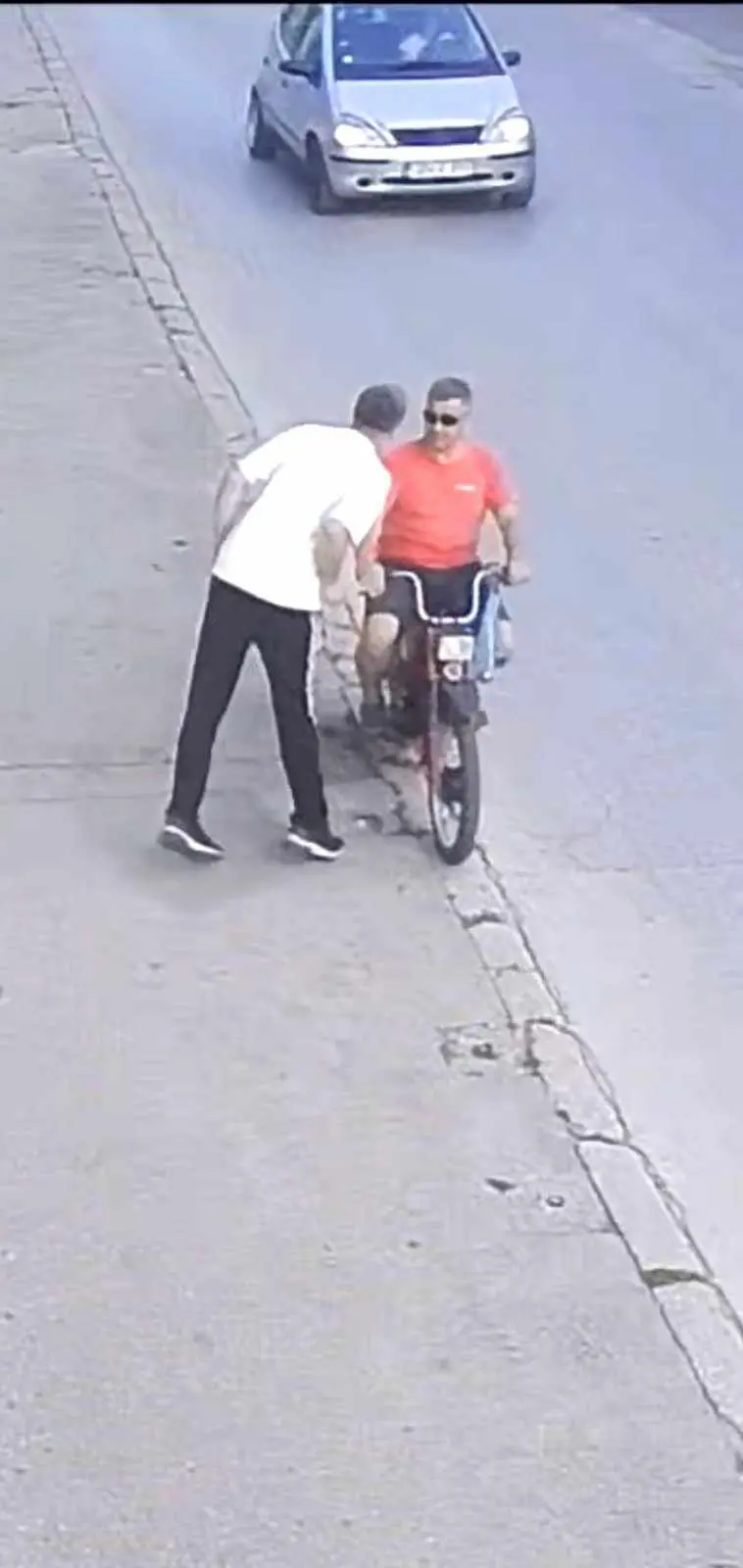 Oni opet sjedaju u vozilo i kreću za mnom, opet su me pretekli i uvaljivali se u moju putanju kretanja,ja sam je pretekao i odreagovao na nacin da sam pljunuo u pravcu vozila, a nisam pljunuo nju, prozor je istina bio otvoren jer su mi dobacivali cijelo vrijeme, ali nisam nju pljunuo nego u pravcu vozila. Pri povratku iz naselja Podvisoki za odprilike 15-20min, dotični A.A. je hodao ulicom u blizini Islamske zajednice, tačnije na trotoaru ispred prodavnice IHTEX, čekajući moj povratak tom ulicom, on je mene zaustavio, pljunuo i udario u prijedjelu glave dok sam se nalazio na motoru.