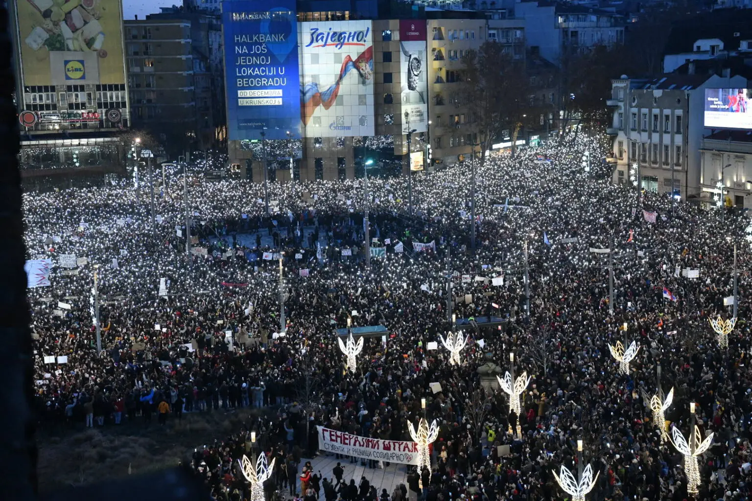 Slavija je bila potpuno blokirana, a na Trgu se nalazilo nekoliko hiljada građana. Protest se večeras održava i u Nišu, gdje se uz studente okupio veliki broj građana.