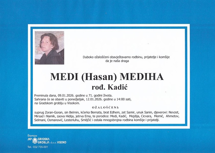 MEDI (Hasan) MEDIHA 12.01.2026. u 14:00 sati