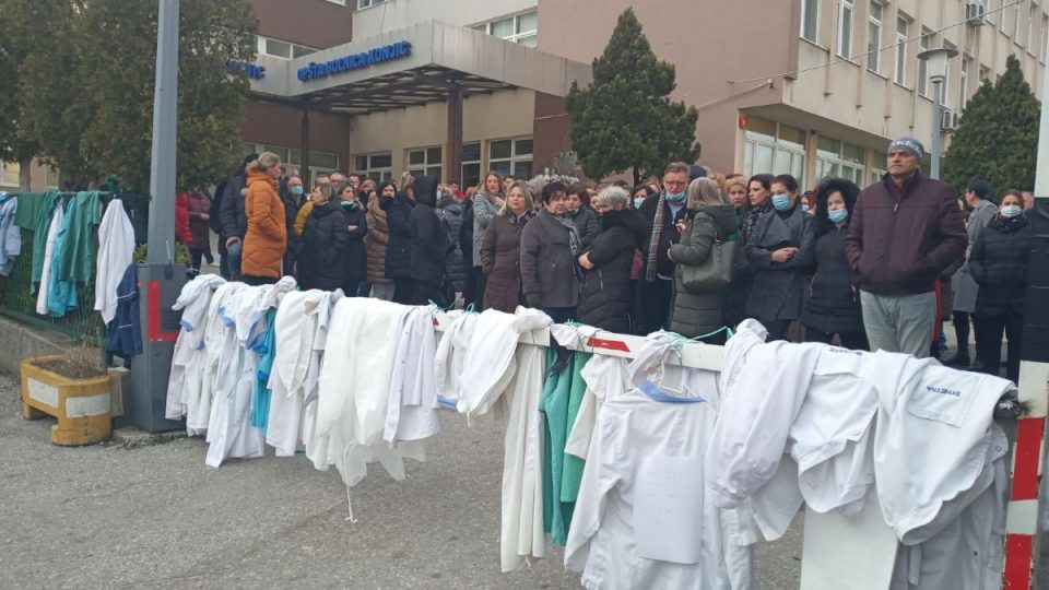 U znak protesta zaposleni u Domu zdravlja i Opštoj bolnici Konjic jutros su odložili bijele mantile i uniforme, kao posljednje upozorenje i vapaj da se ovim ustanovama odblokiraju računi, a zaposlenima isplate plate.