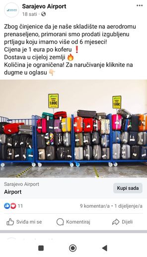 Na lažnoj stranici objavljeno je da Međunarodni aerodrom Sarajevo prodaje izgubljen prtljag. Naveli su da je cijena po koferu jedan euro, a dostava je moguća u cijeloj Bosni i Hercegovini.