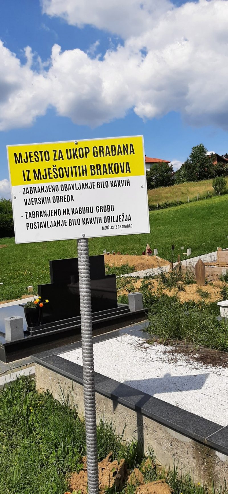 Redakciji Raporta obratili su se građani Gradačca, nezadovoljni natpisom koji je osvanuo na malom ateističkom groblju. Na fotografijama koje su poslali vidi se tabla na kojoj piše: “Mjesto za ukop građana iz mješovitih brakova. Zabranjeno je obavljanje bilo kakvih vjerskih obreda. Zabranjeno je na kaburu-grobu postavljanje bilo kakvih obilježja. Medžlis IZ Gradačac”.