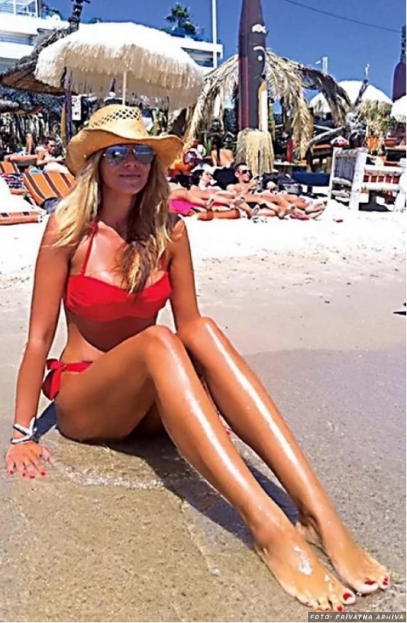 Na fotografijama je Melina pozirala u ferari crvenom kupaćem kostimu, a mnogi nisu mogli da skinu pogled sa njenih dugih izvajanih i nauljenih nogu.