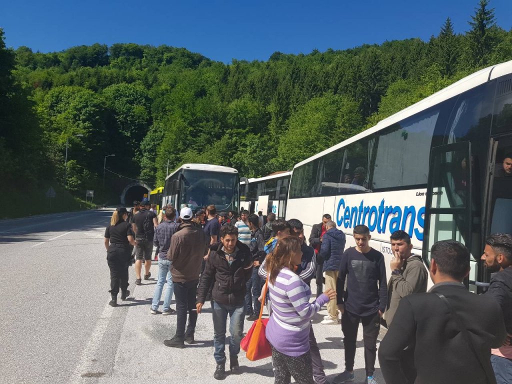 Konvoj sa migrantima, koji su jutros krenuli iz Sarajeva ka centru u Salakovcu se vratio kroz tunel Ivan-sedlo, na dio koji pripada Kantonu Sarajevo, u šta smo se uvjerili na licu mjesta.