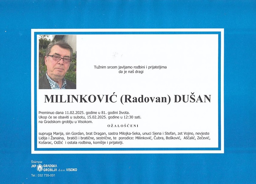 MILINKOVIĆ (Radovan) DUŠAN 15.02.2025. godine u 12:30 sati 14. Februara 2025. MILINKOVIĆ (Radovan) DUŠAN 15.02.2025. godine u 12:30 sati