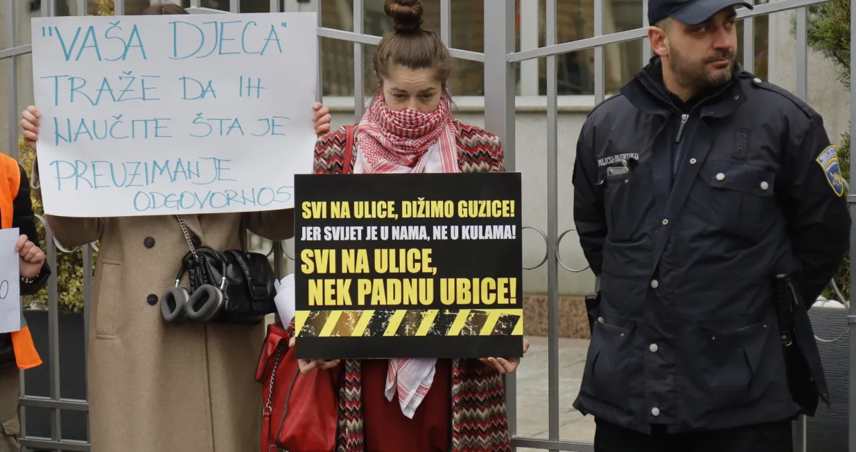 Sarajevski studenti u petak su održali protest pred zgradom Ambasade Srbije. Protest je imao za cilj pružanje podrške studentima u Srbiji, ali i ukazivanje na ozbiljne probleme u Bosni i Hercegovini, uključujući korupciju i nebrigu vlasti prema žrtvama tragedija.