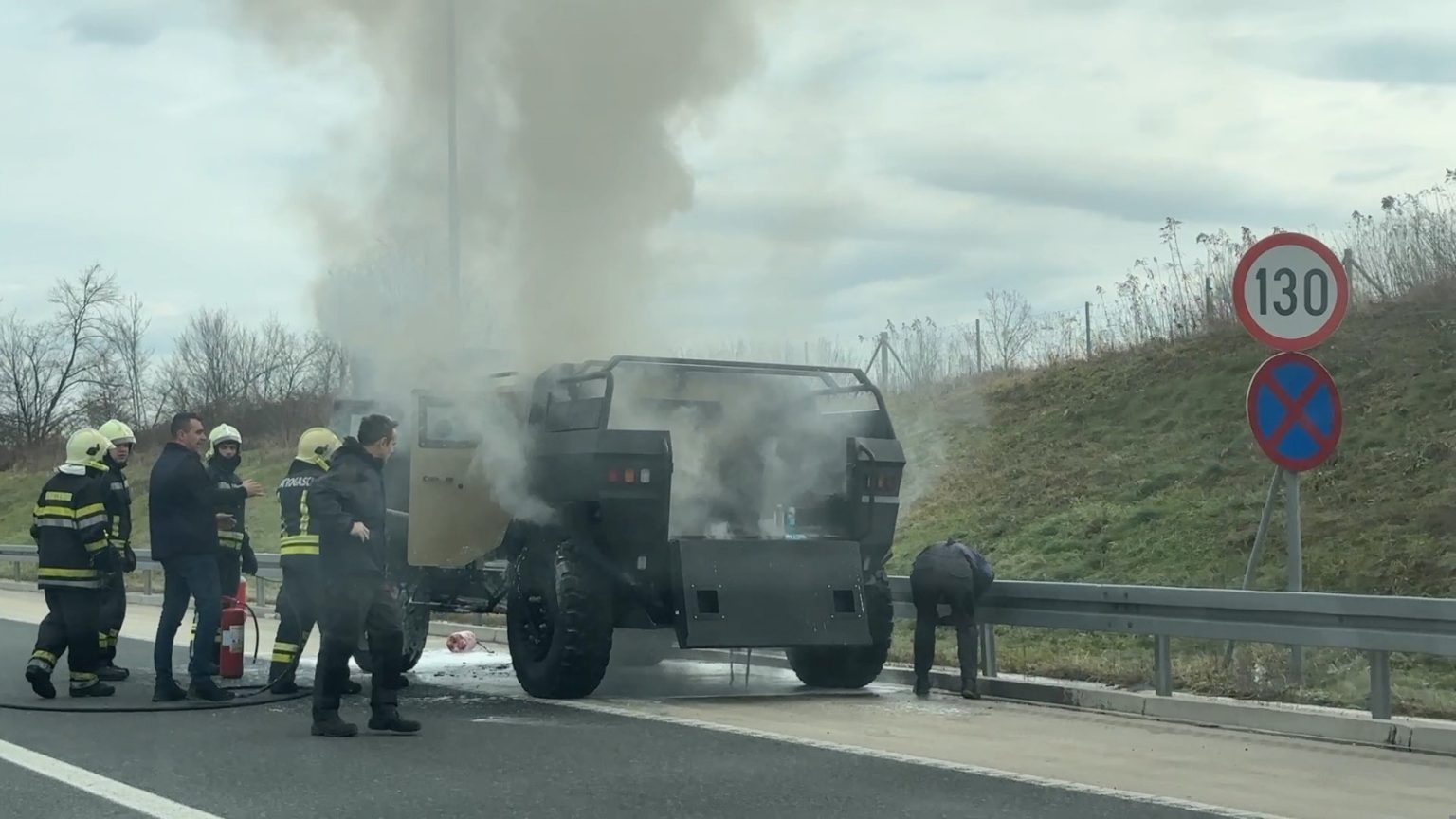 Na autoputu 9. januar gori taktičko vozilo MUP-a Republike Srpske “Vihor”.