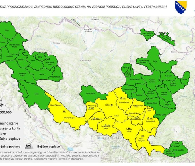 Federalni hidrometeorološki zavod (FHMZ) izdao je crveno upozorenje za nekoliko dijelova Bosne...