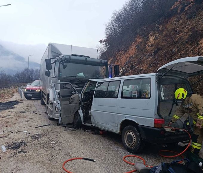 Jedna osoba je poginula, a osam povrijeđeno u sudaru kombija i kamiona...