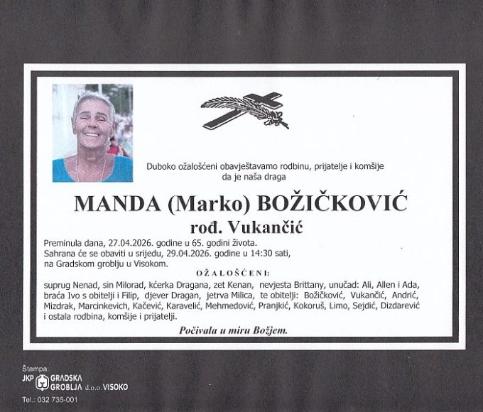 BOŽIČKOVIĆ (Marko) MANDA 29.04.2026. u 14:30 sati