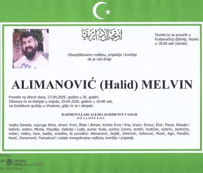 ALIMANOVIĆ (Halid) MELVIN 29.04.2026. u 18:00 sati