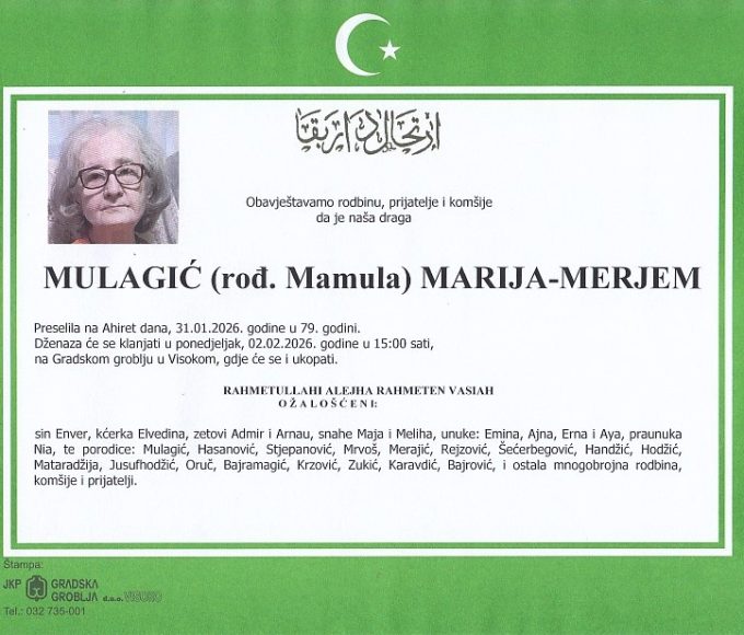MULAGIĆ (rođ. Mamula) MARIJA-MERJEM 02.02.2026. u 15:00 sati