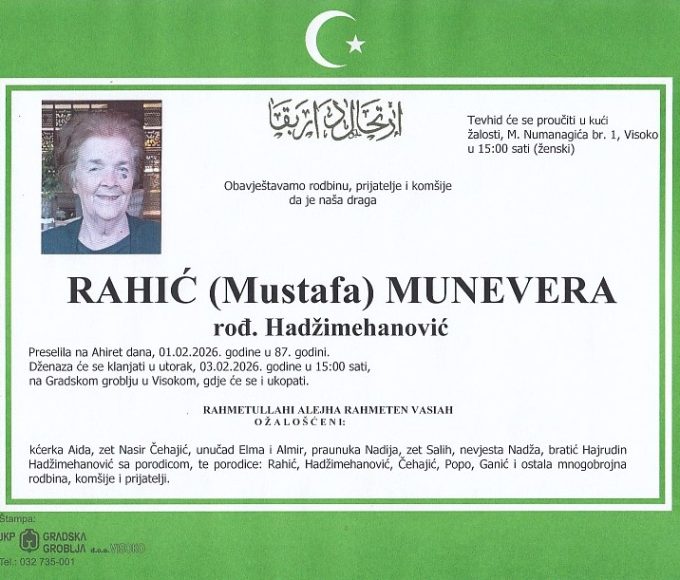 RAHIĆ (Mustafa) MUNEVERA 03.02.2026. u 15:00 sati