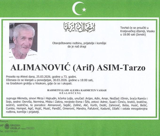ALIMANOVIĆ (Arif) ASIM-Tarzo 30.03.2026. u 18:00 sati