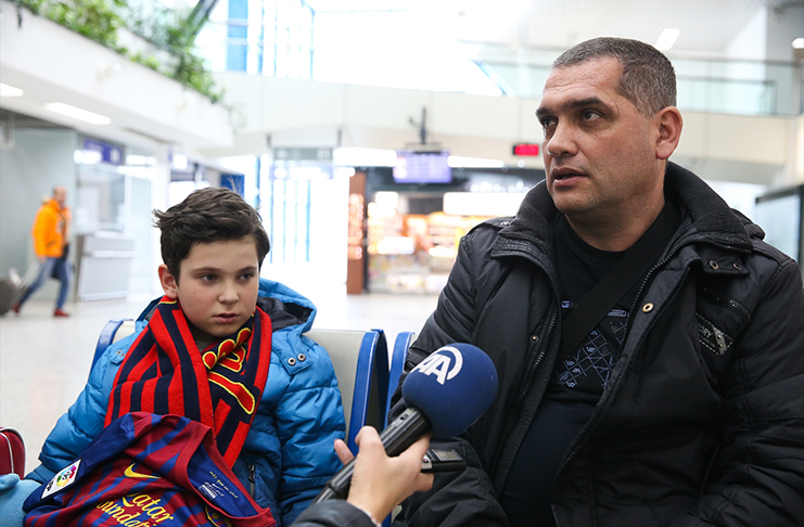 Ekipa Anadolu Agency (AA) dočekala je na Međunarodnom aerodromu u Sarajevu Davuda i njegovog oca Halida nakon povratka iz Barcelone. Sa šalom katalonskog diva oko vrata i dresom s potpisima igrača nije skidao osmijeh s lica.