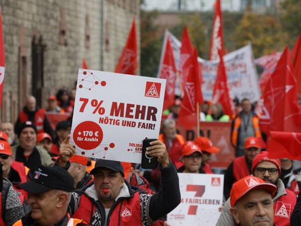 IG Metall zahtijeva povećanje plata za zaposlene za sedam posto u narednoj godini. Do sada su poslodavci nudili povećanje plata od 1,7 posto od jula 2025. godine i dodatnih 1,9 posto od jula 2026. godine, uz ugovor na 27 mjeseci.
