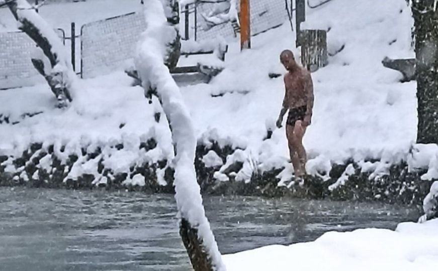 Iako čitav dan pada snijeg te je temperatura ispod nule, jedan muškarac odlučio se na šetnju diljem grada – bos i samo u šorcu.