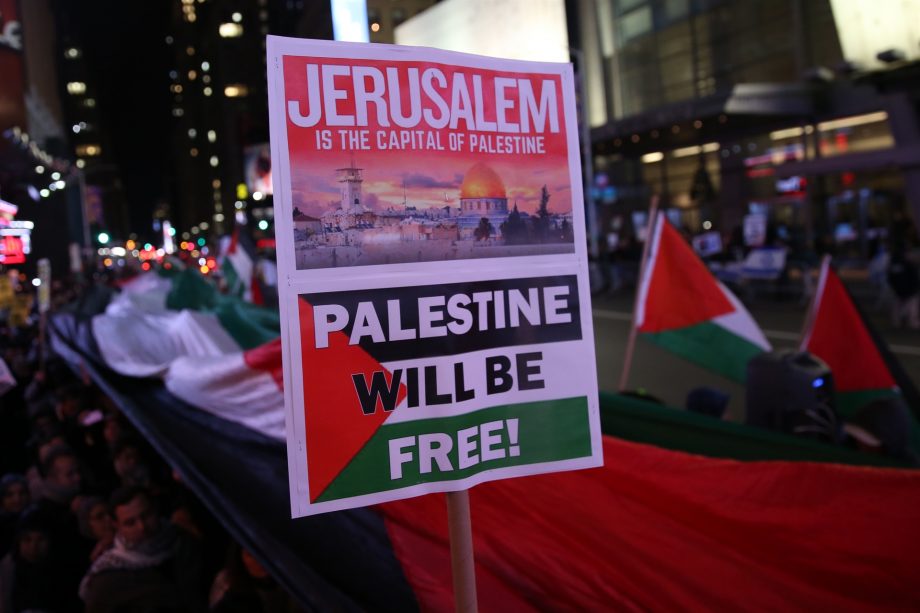 Okupio se veliki broj Palestinaca i drugih muslimana koji žive u Sjedinjenim Američkim Državama (SAD). Uzvikivali su slogane “Palestina će biti slobodna”, “Izrael je terorista, a Palestina slobodna”, “Živjela Palestina”. Nosili su i transparente na kojima je pisalo “Jerusalem je crvena crta”.