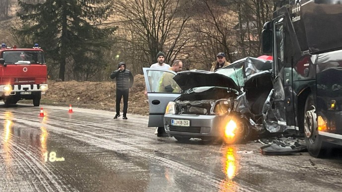 Na lice mjesta su stigli hitna pomoć i vatrogasci, jer je jedna osoba ostala zaglavljena u putničkom automobilu koji je slovenskih registarskih tablica.