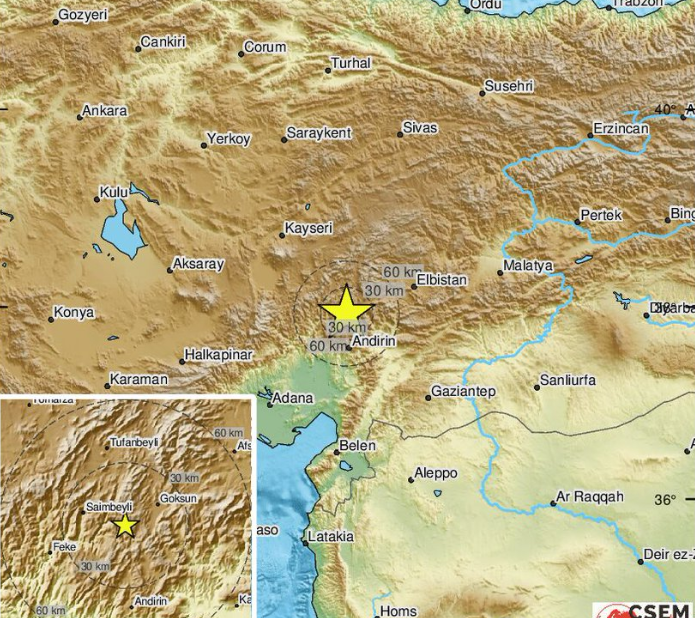 Prema posljednjim podacima, epicentar je bio 19 kilometara jugozapadno od grada Goksun.