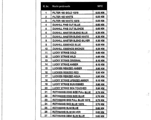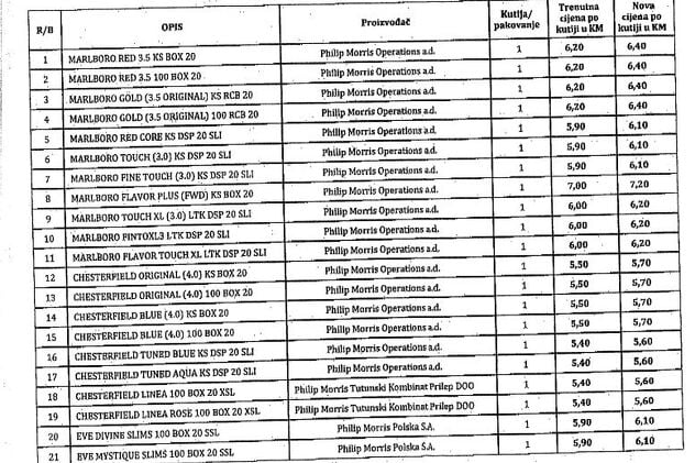 Iz Uprave za indirektno oporezivanje (UIO) su potvrdili za Klix.ba da su im svi veliki proizvođači i distributeri cigareta dostavili nove maloprodajne cijene cigareta.