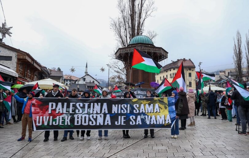 Protestni skup za narod Palestine u organizaciji International Organisation for Development održan je danas u Sarajevu, a počeo je na Baščaršiji, tačnije ispred Sebilja.