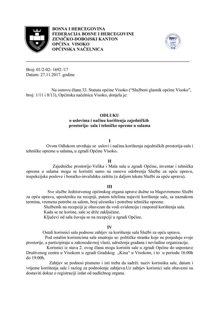 OO SDP BiH Visoko je za 21.12.2017.g. predvidio organizovanje javne tribine sa temama koje su interesantne svim građanima i na koju su svi dobrodošli, uključujući i one koji sa SDP-om ne dijele iste stavove. Obzirom da se očekuje prisustvo većeg broja građana, kako zbog samih tema tribine, tako i zbog već najavljenih gostiju, OO SDP BiH Visoko je pravovremeno podnio nadležnoj službi općine zahtjev za odobrenje korištenja velike sale općine na što svakako imamo pravo, međutim isti je odbijen sa najblaže rečeno bezobraznim obrazloženjem. Podsjećamo javnost na nedavni “problem sa elektro-instalacijama” u velikoj sali i pokušajem diverzije svečane sjednice OO SDP BiH Visoko i obilježavanja Dana državnosti BiH, nakon čega je općinska načelnca donijela protivpravnu Odluku o uslovima i načinu korištenja zajedničkih prostorija-sala i tehničke opreme, preuzimajući ingerencije Općinskog vijeća iako bi isto glasovima vijećnika tzv. Nezavisne liste, vjerovatno bilo potvrđeno bez razmišljanja, kako je to već odavno slučaj.