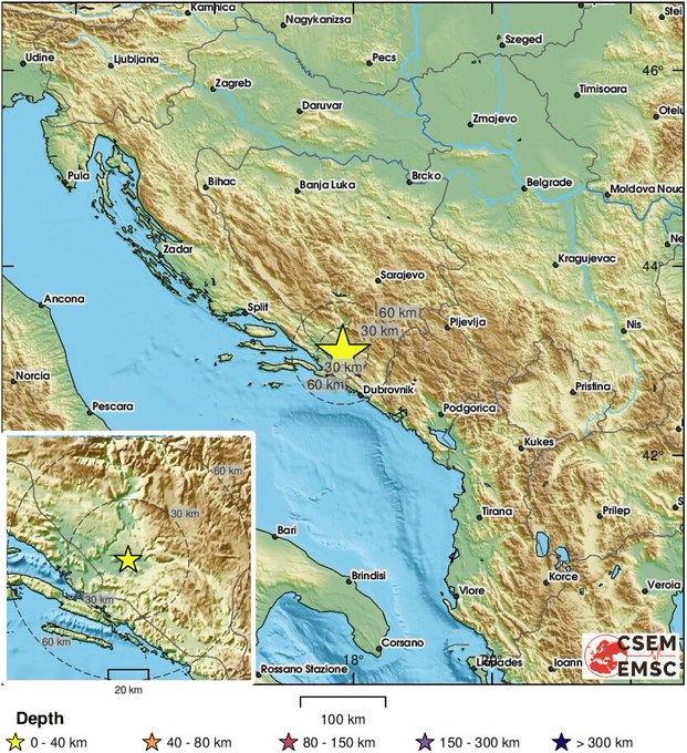 Epicentar je bio 14 kilometara od Čapljine i 29 kilometara od Mostara.