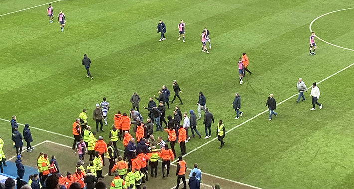 Nakon što je sudija David Webb označio kraj meča utrčali su na teren kako bi se obračunali sa trenerom Veljkom Paunovićem.