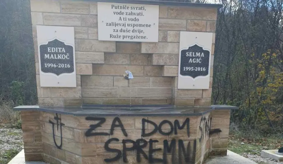 No, ona je prethodnih dana oštećena sramotnim natpisom. Naime, crnim slovima ispisano je “Za dom spremni”.