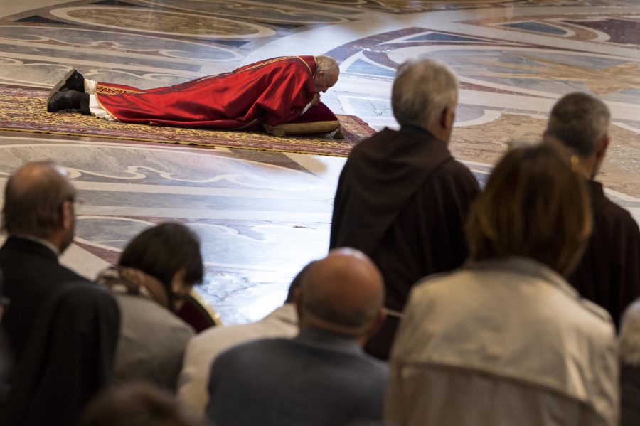 Papa Franjo je nekoliko minuta ležao licem okrenutim prema podu ispred glavnog oltara u bazilike Svetog Petra.