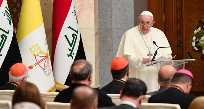 Papa Franjo je nedugo nakon dolaska u Irak, što je prvi posjet jednog pape u historiji toj zemlji razorenoj ratovima i pogođenoj pandemijom, pozdravivši kršćane koji su ostali ondje uprkos svemu, poručio: “Neka utihne oružje!”