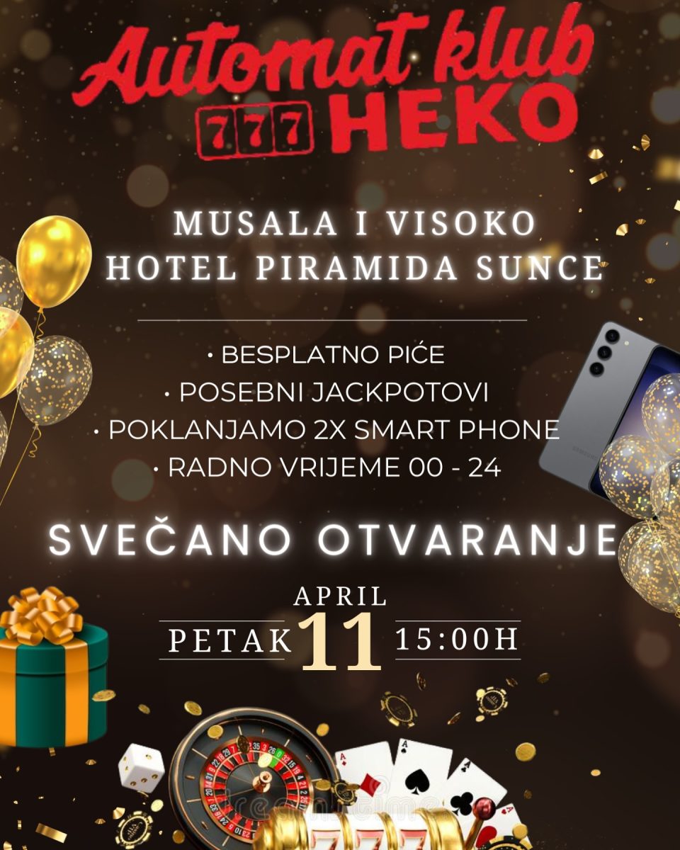 Ne propustite priliku da budete dio otvaranja najmodernijeg automat kluba u Visokom – dođite, zaigrajte i osjetite atmosferu kakvu ovaj grad još nije doživio!