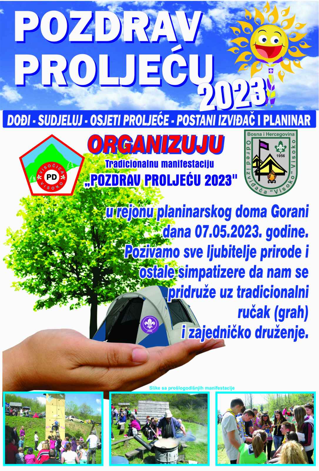I ove godine će Planinarsko društvo “Visočica” Visoko u saradnji sa Odredom izviđača “Visoko” organizovati tradicionalnu manifestaciju “Pozdrav proljeću”. Kao i do sada, manifestacija će biti održana u rejonu Gorana, tačnije planinarskog doma “Gorani”, a ovogodišnji termin je nedjelja, 7. maj.