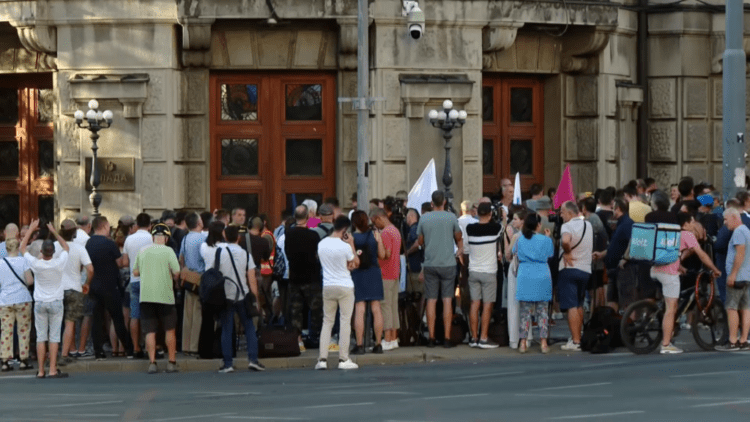 Nešto poslije 18 časova ispred zgrade Vlade Srbije počeo je protest građana zbog zatvorske kazne trojici aktivista.