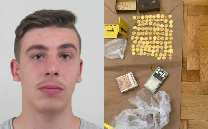 Izvršenim pretresom pronađen je određeni iznos novca, kao i nakit i dukati te kutija sa napisom “Vlasništvo Župe Kakanj”.