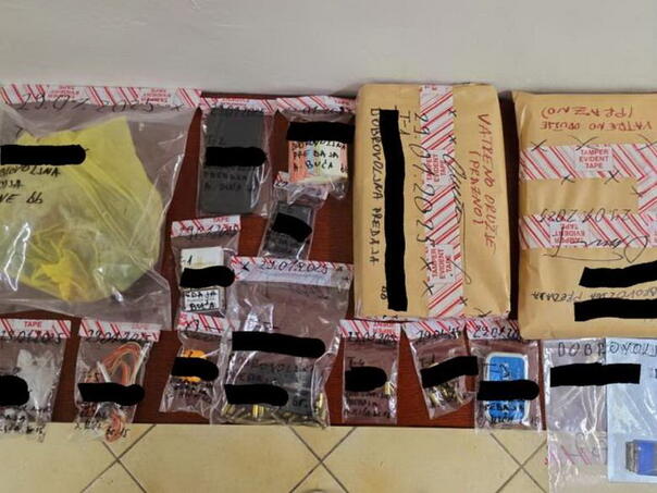 U pretresu objekata pronađena je i privremeno oduzeta određena količina materije koja asocira na heroin, određena količina materije koja asocira na kokain, vaga za precizno vaganje, sredstva za konzumiranje opojne droge, više komada metaka različitog kalibra i dvije detonatorske kapsle.
