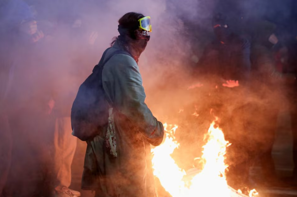 Policajci u opremi za razbijanje nereda ispalili su gumene metke, suzavac i koristili vodene topove kako bi rastjerali demonstrante koji su bacali zapaljiva sredstva, naveo je novinar agencije France Presse (AFP) koji je vidio plamen s prozora zgrade.