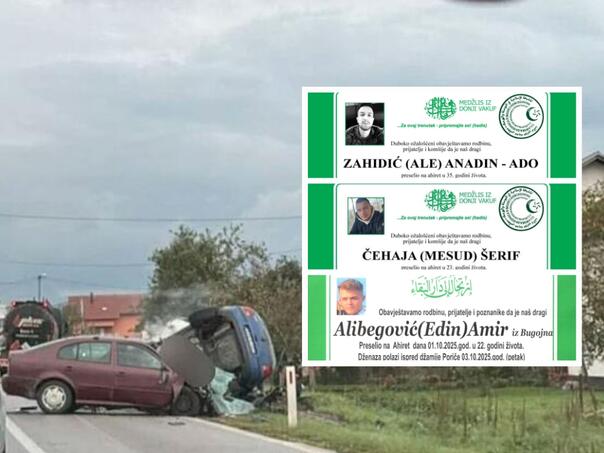 Kako je objavljeno, poginuli su Amir Alibegović (22) iz Bugojna te Anadin-Ado Zahidić (35) i Šerif Čehaja (23) iz Donjeg Vakufa. Dženaza svoj trojici mladića bit će obavljena u petak.