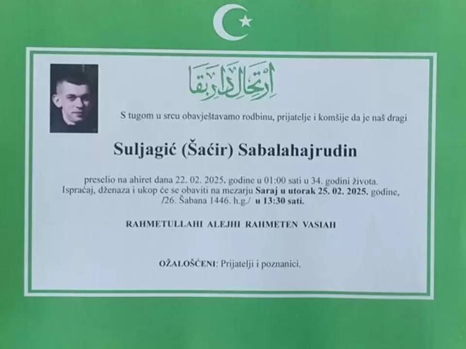 Sabalahajrudin Suljagić, beskućnik koji je prije dvije noći brutalno ubijen u Tuzli, biće ukopan na mezarju Saraj u Siminom Hanu pokraj Tuzle. Dženaza će održati u utorak (25. februar) u 13:30 sati.