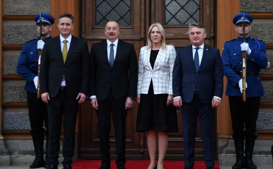 Ispred zgrade Predsjedništva BiH upriličena je cеrеmоniјa svečanog dоčеkа uz vојnе pоčаsti, a Aliyeva su dočekali predsjedavajuća i članovi državnog predsjedništva Željka Cvijanović, Denis Bećirović i Željko Komšić.