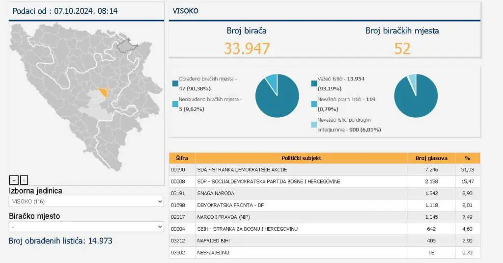 Preliminarni rezultati za Gradsko vijeće Visoko