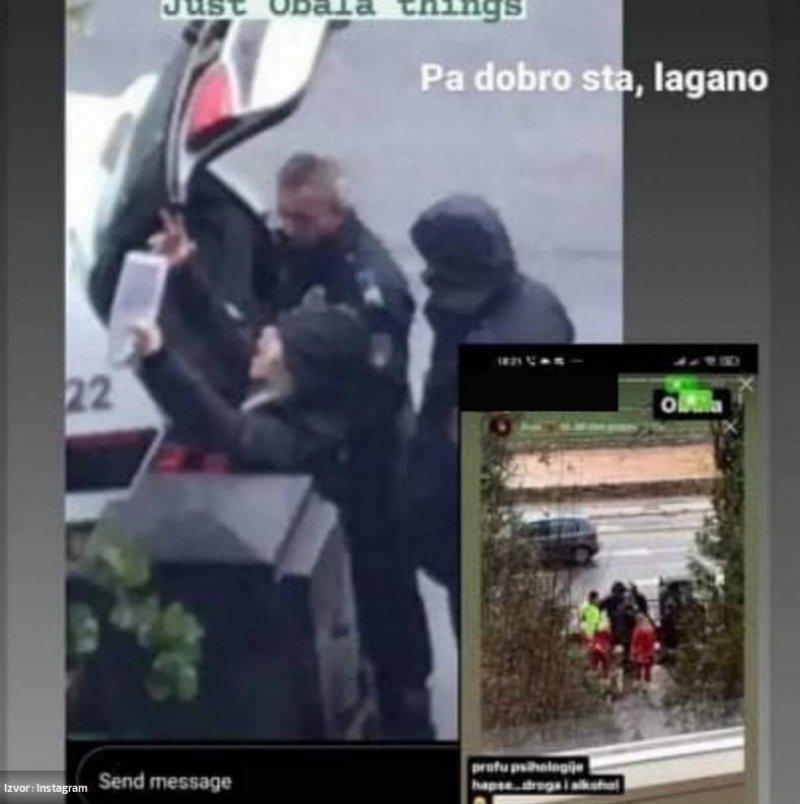 Na Instagramu su, sudeći prema objavljenim fotografijama, učenici fotografisali ulaz u dvorište škole ispred kojeg se može vidjeti da se nalaze policijski službenici i radnici Hitne pomoći te, pretpostavlja se i navedena profesorica koju policija uvodi u automobil.