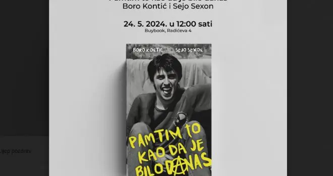 Promocija knjige „Pamtim to kao da je bilo danas, autora Bore Kontića i Seje Sexsona, održaće se u petak, 24. maja, u 12:00 sati u sarajevskoj knjižari Buybooku u Radićevoj ulici.