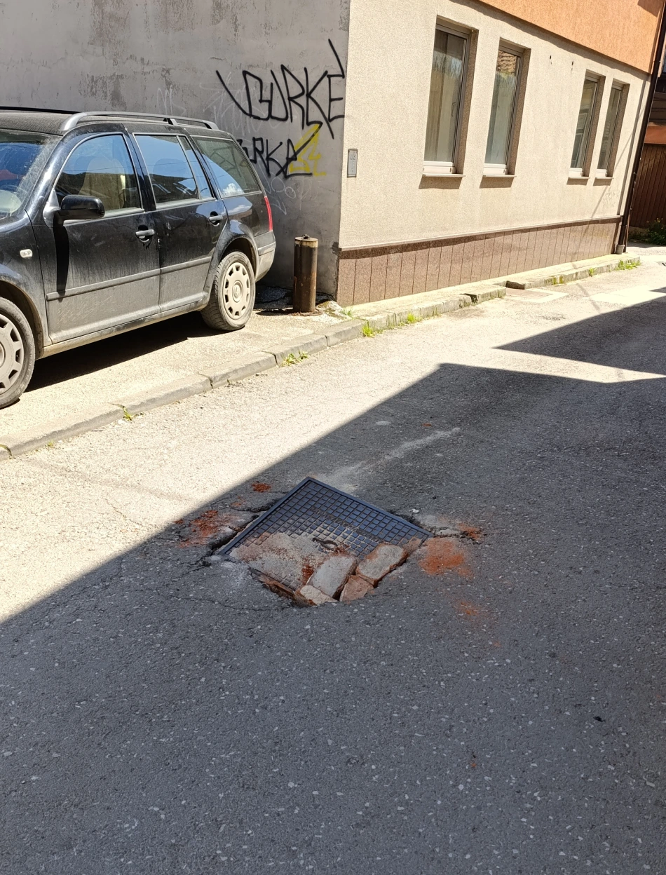 U samom centru Visokog, u ulici Matrakčijina, već više od dva mjeseca stoji propali i opasno oštećen komunalni šaht – bez ikakvog upozorenja, oznake ili pokušaja sanacije. Iako se nalazi na frekventnoj gradskoj lokaciji kojom svakodnevno prolaze vozila i pješaci, nadležni očigledno ne smatraju hitnim da ovaj problem riješe.